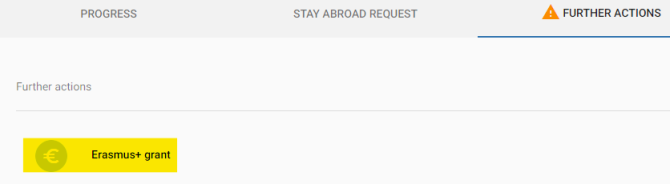 2. Select the approved stay abroad request for your internship/thesis. On the tab Further actions, click on Erasmus+ grant. This will start your grant application.